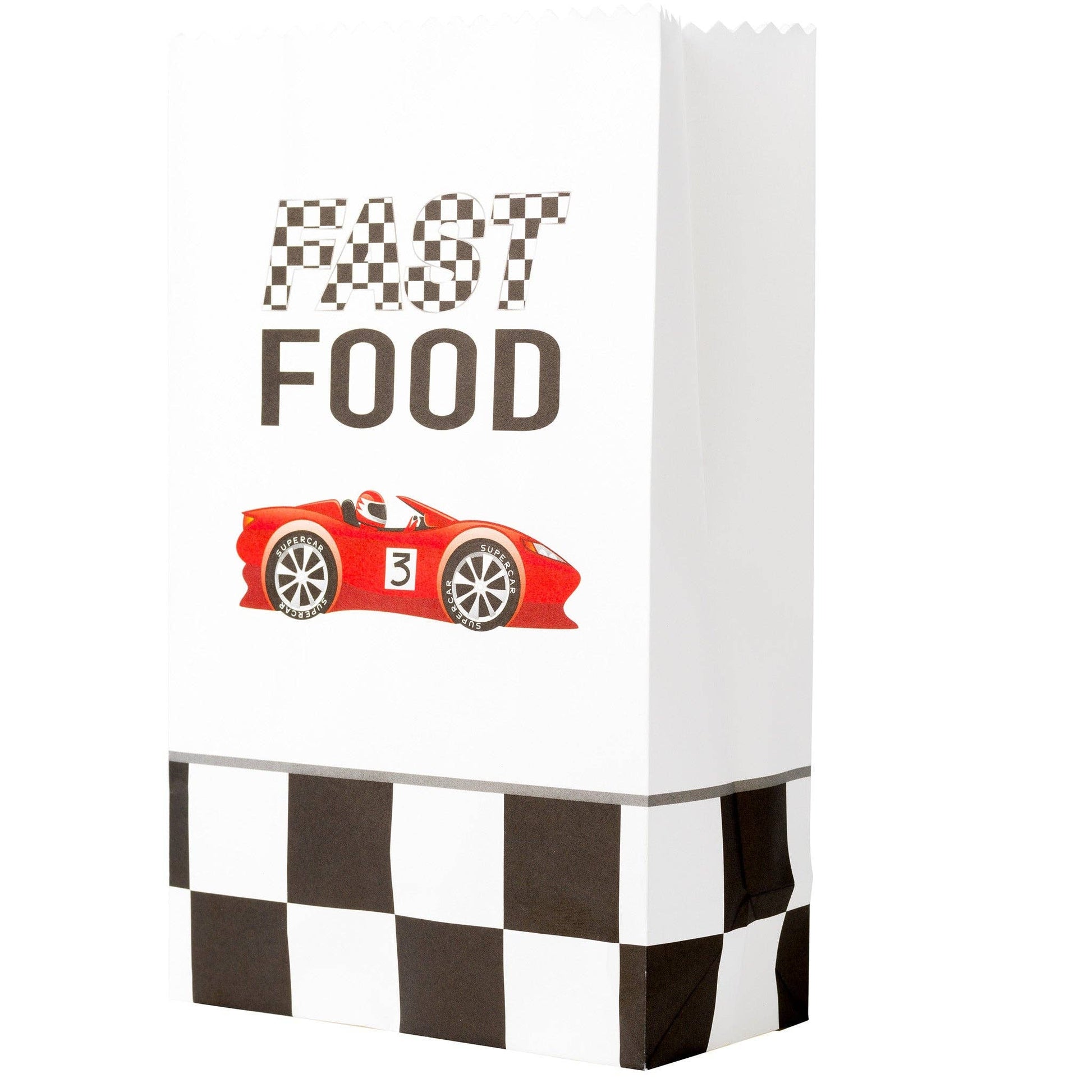 Candy bag in white with black, red and silver details in racing theme.